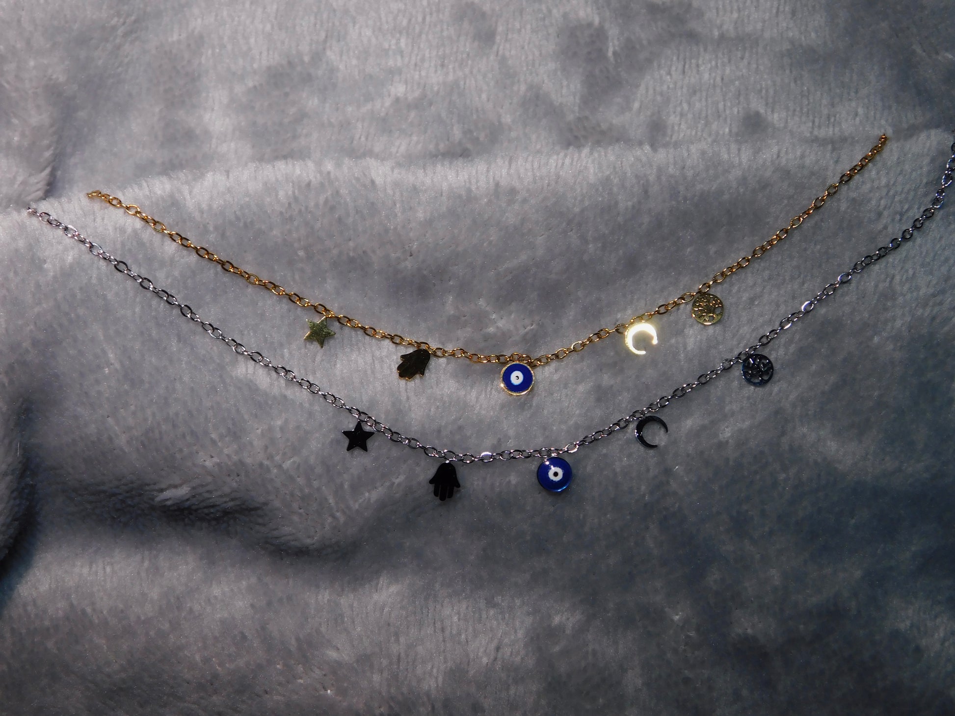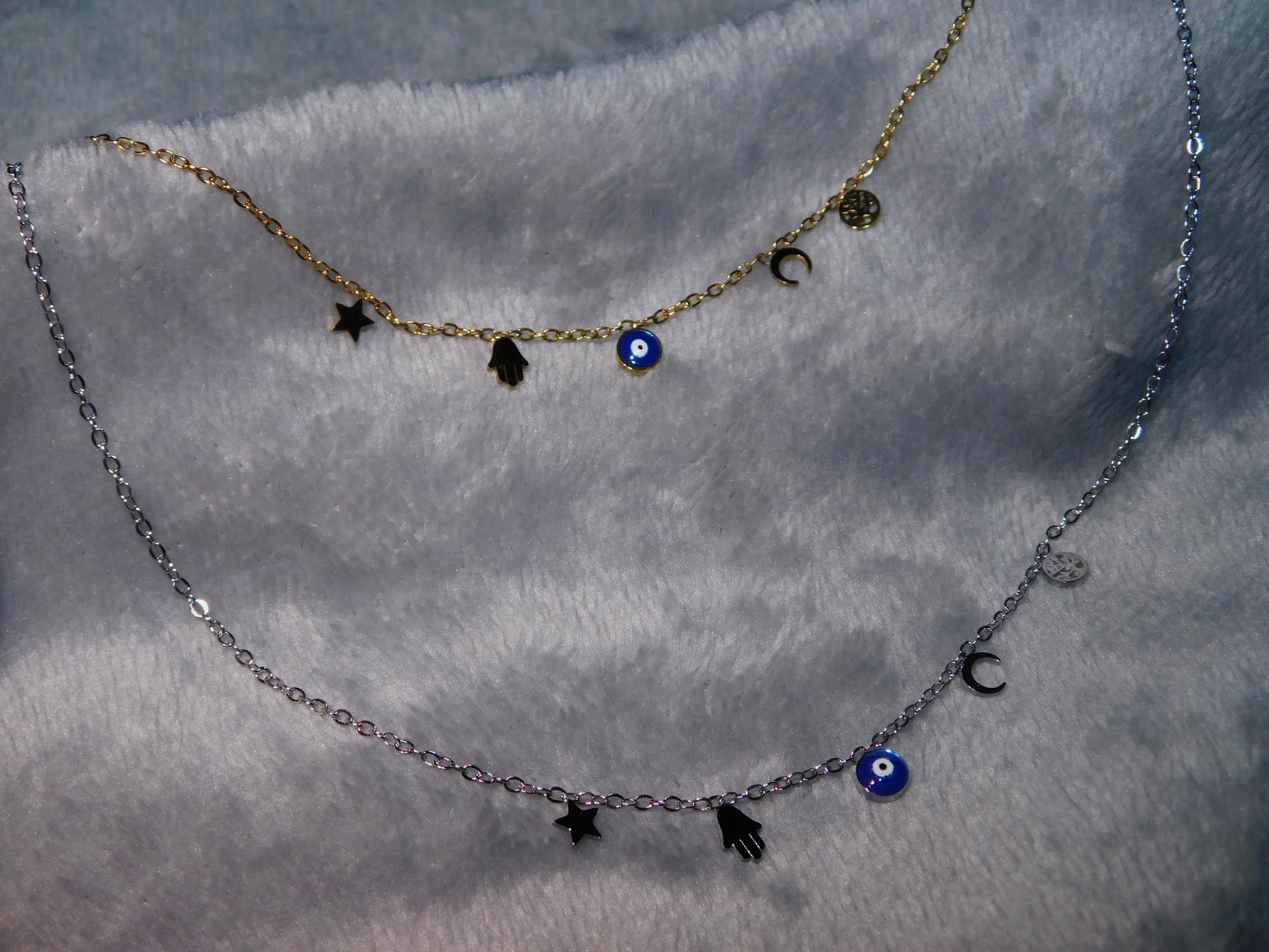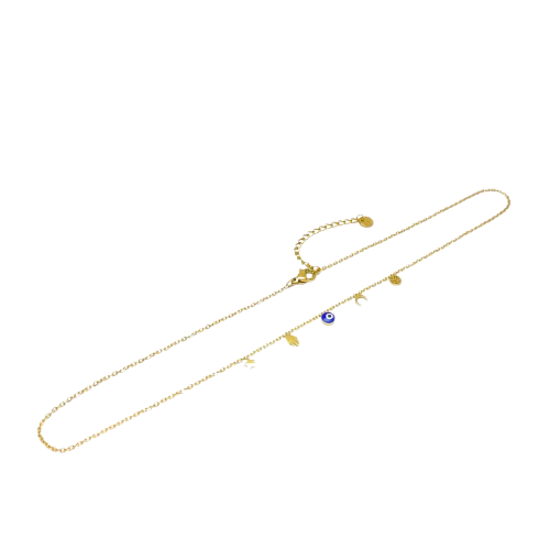 O Colar Mau Olhado é inspirado no símbolo tradicional de proteção contra energias negativas. Com um design delicado e moderno, o colar é adornado com o famoso "olho grego" que transmite boas vibrações e proteção. Disponível em dourado, para um toque de luxo e calor, ou prateado, para um estilo clássico e elegante. Feito em aço inoxidável, garante resistência, durabilidade e um brilho duradouro.