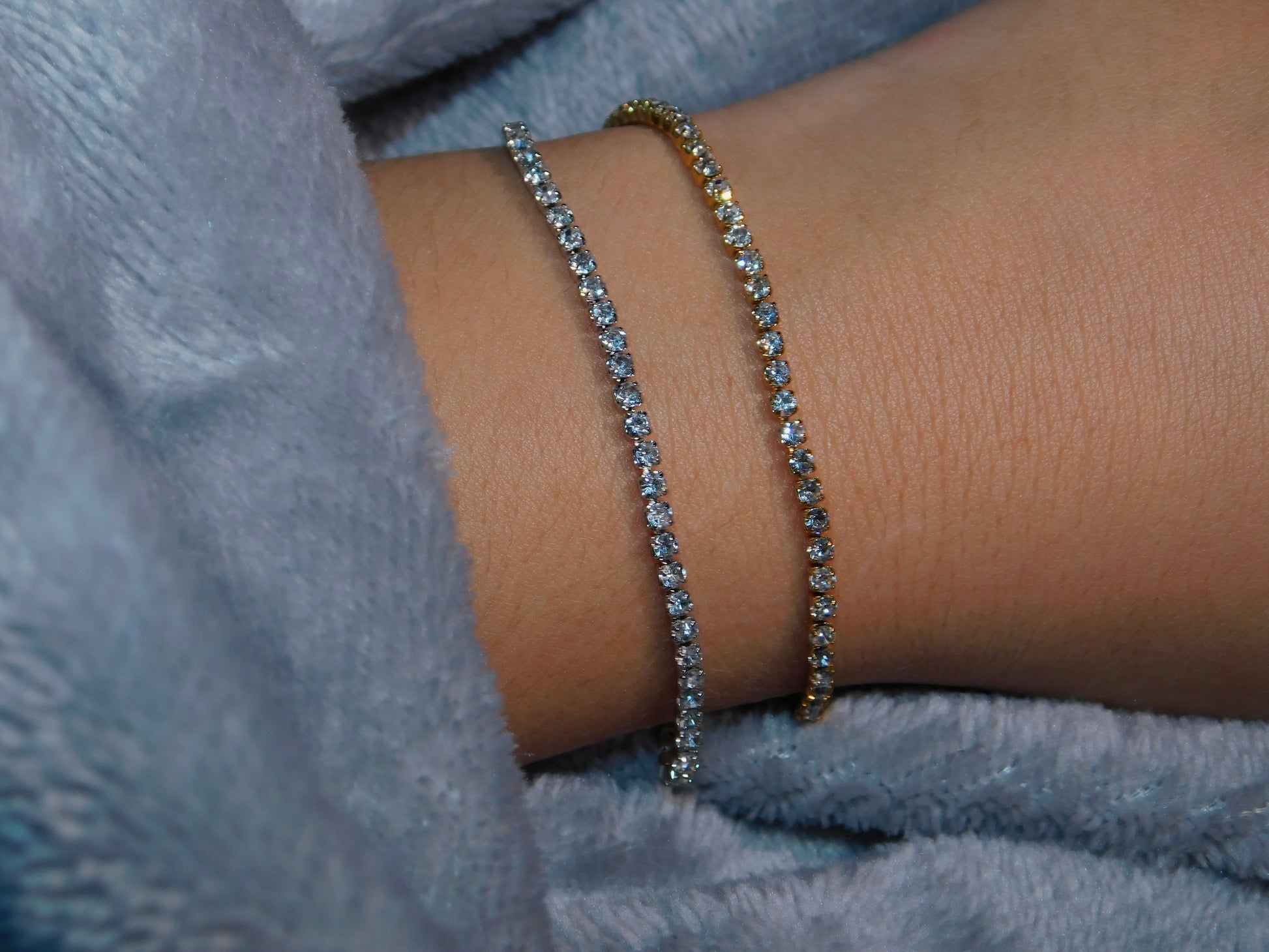 A Pulseira Brilhosa é perfeita para quem busca adicionar um toque de glamour e elegância ao seu visual. Com pedras brilhantes que capturam a luz, ela traz um brilho sutil e sofisticado. Disponível em duas variantes: dourado, para um estilo luxuoso e quente, e prateado, para um visual clássico e refinado. Feita em aço inoxidável, a pulseira oferece resistência e durabilidade, mantendo seu brilho por mais tempo.